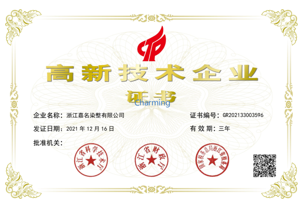 企業(yè)已通過(guò)ISO9001質(zhì)量體系認(rèn)證、ISO14001環(huán)境體系認(rèn)證、Oeko-Tex Standard 100國(guó)際生態(tài)紡織品認(rèn)證、OCS有機(jī)產(chǎn)品認(rèn)證、GRS全球回收標(biāo)準(zhǔn)認(rèn)證。嘉名人將以新發(fā)展理念為引領(lǐng),著力開發(fā)“綠色、科技、時(shí)尚、智慧”的新產(chǎn)品,不斷增強(qiáng)企業(yè)的核心競(jìng)爭(zhēng)力,朝著“致力成為國(guó)內(nèi)外知名服裝品牌的首選面料供應(yīng)商”的企業(yè)愿景邁進(jìn)。
