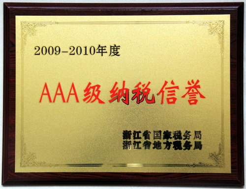 2011年12月,浙江嘉名控股有限公司、浙江嘉名染整有限公司被分別被浙江省國家稅務(wù)局、浙江省地方稅務(wù)局評為2009—2010年度AAA級納說信譽企業(yè)。